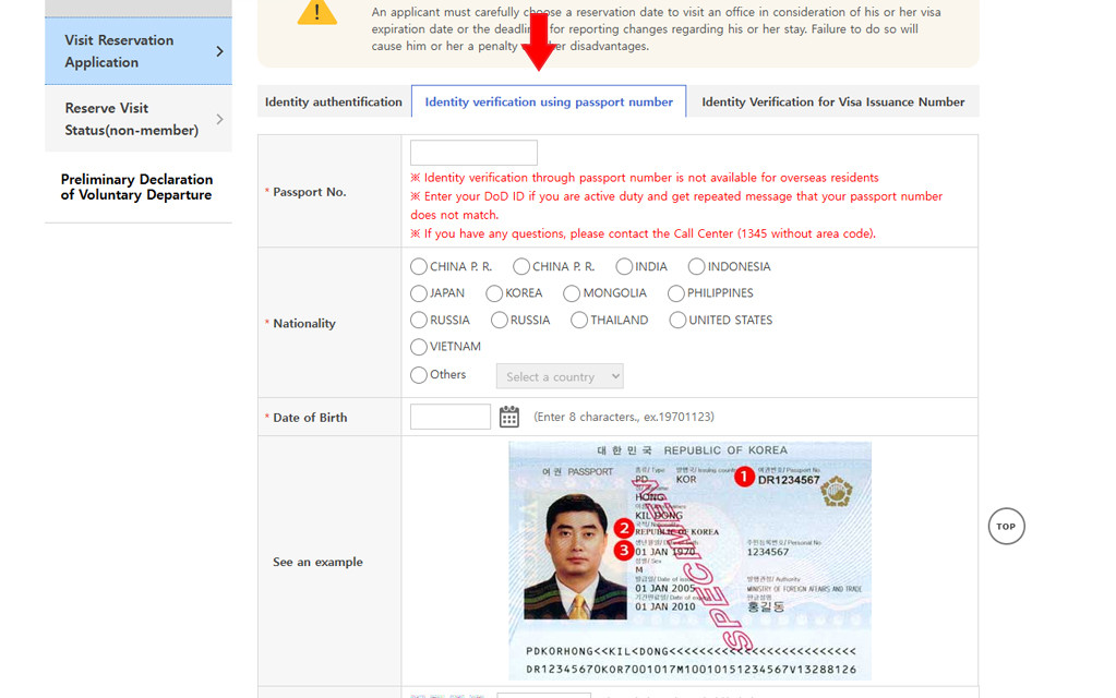 3. You will be redirected to the Identity Verification page. Choose the second tab, “Identity verification using passport number,” and once you have submitted the relevant information, click confirm.