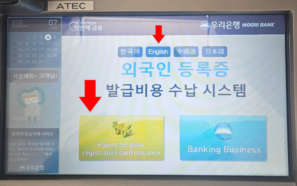 4. While you are waiting, pay your card issuance fee at the ATM inside the building. (E.g., Located on 1F & 3F in Seoul Immigration Office)