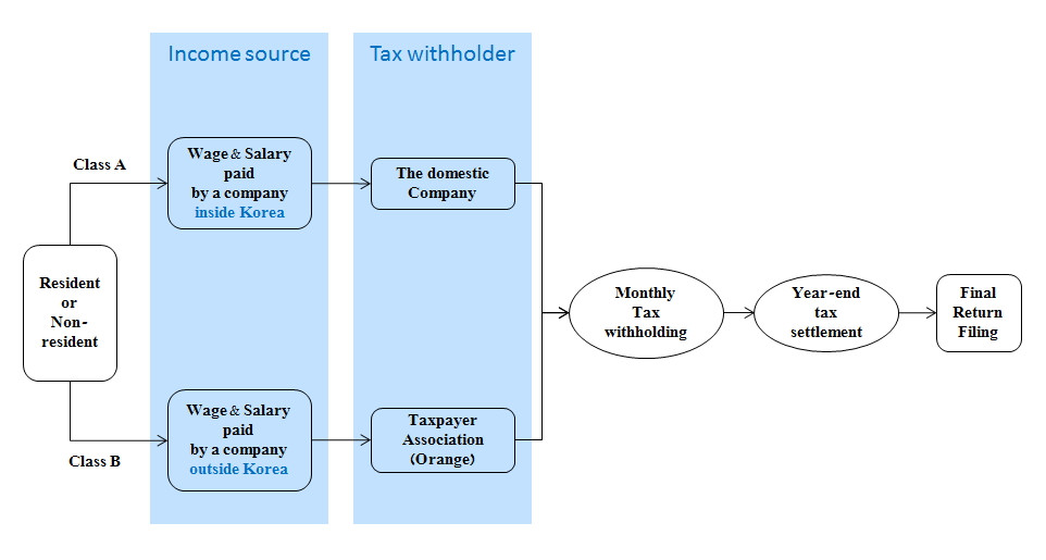 Native English teachers working in Korea typically pay income tax on their earnings. Basic income (national) taxes are withheld monthly by your school and paid directly to the Korean tax authorities. Schools calculate monthly tax using the Simplified Tax Withholding Table provided by the National Tax Service (NTS). Teachers also pay local income tax, which is 10% of the national income tax. By the end of January each year (or upon leaving Korea), teachers must complete a year-end tax settlement to finalize their tax liability. Native English teachers are generally eligible for the same income deductions and tax credits as Korean workers, except for housing-related deductions and credits.