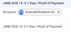 Email Subject: Your Name / Visa Type / Proof of Payment (E.g., MULLER, Adam / E-2-1 / Proof of Payment)