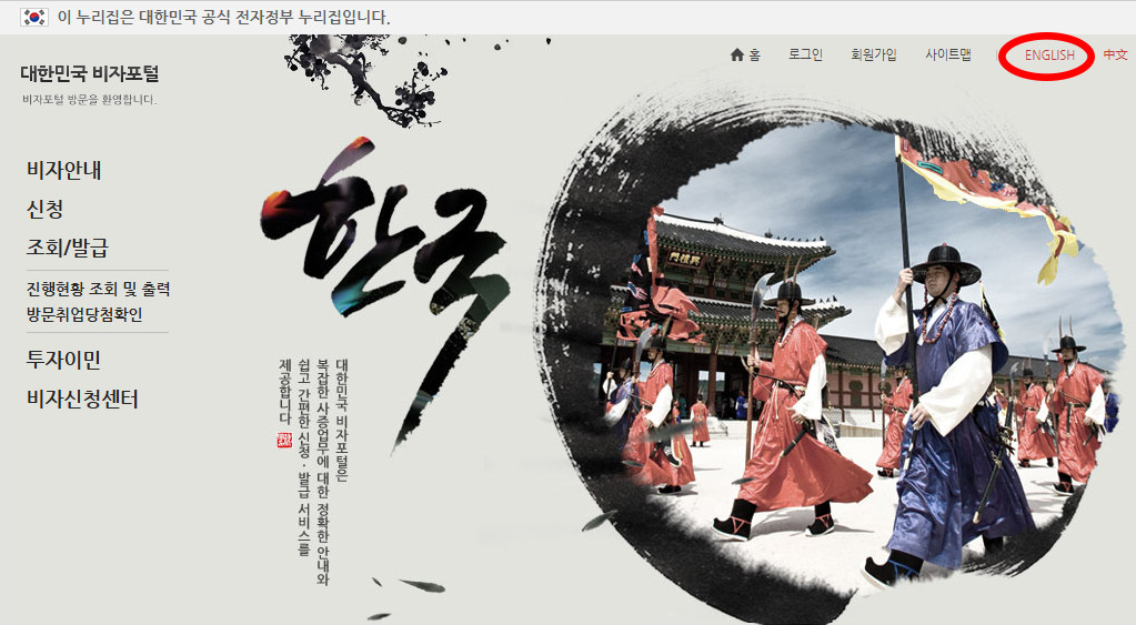 1. Go to the Korea Visa Portal site. Click the language option in the top right and select English.