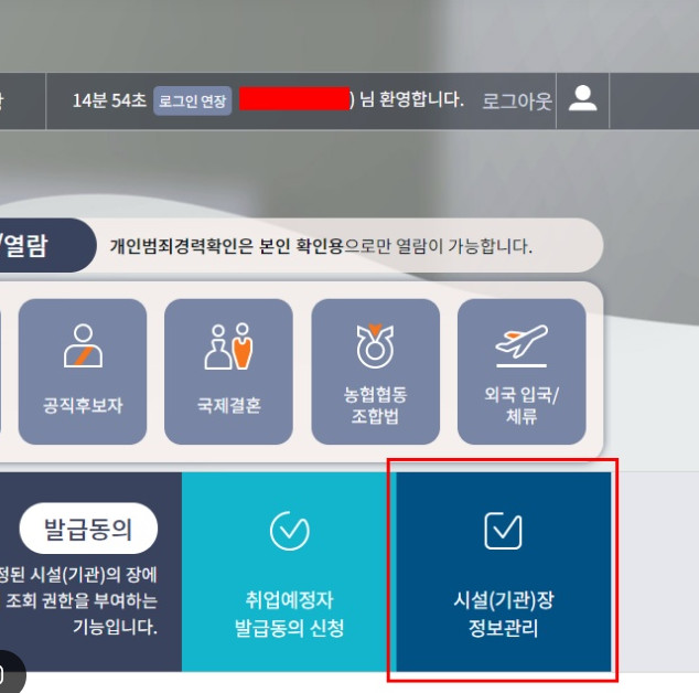 Click “Identity Verified (Send to Organization): 시설(기관)장정보관리