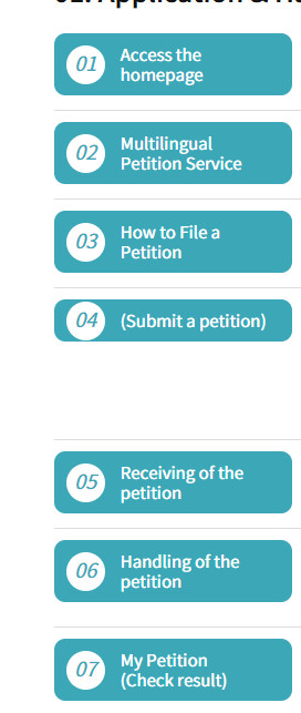 An E-Petition in Korean is: 민원신청 / civil petition system |