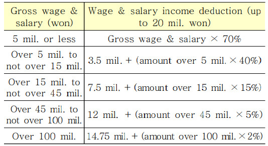 - E.g., Gross Wage & Salary Income = 30 Million KRW
