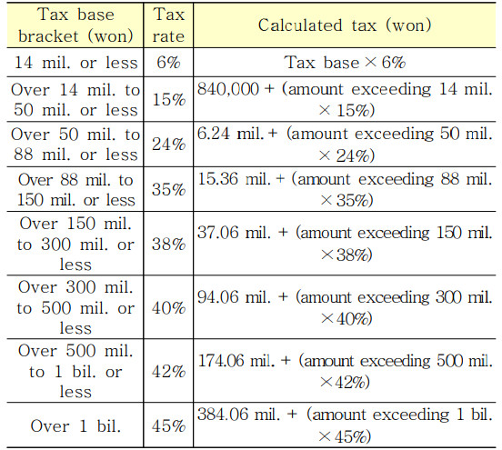- Tax Base = (22.5 Mil. - 1.2 Mil.) = 21.3 Million KRW