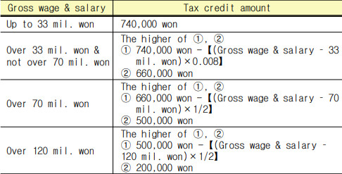 - Adjusted Wage & Salary Income = (30 Mil. - 7.5 Mil. + (30 Mil./15 Mil. x 0.15)) = 22.5 Million KRW