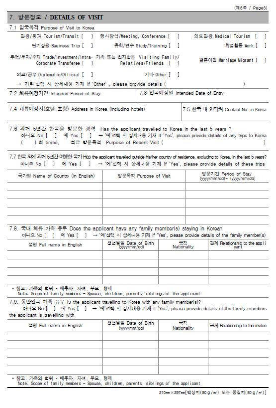You must complete the form truthfully, as you will undergo a medical examination upon arrival in Korea to confirm you are fit to work. As stated in the form, leaving blanks or providing false information may result in visa denial, cancellation, or deportation.