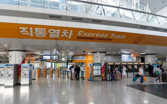 Incheon Airport to Seoul Station takes around 45 minutes.