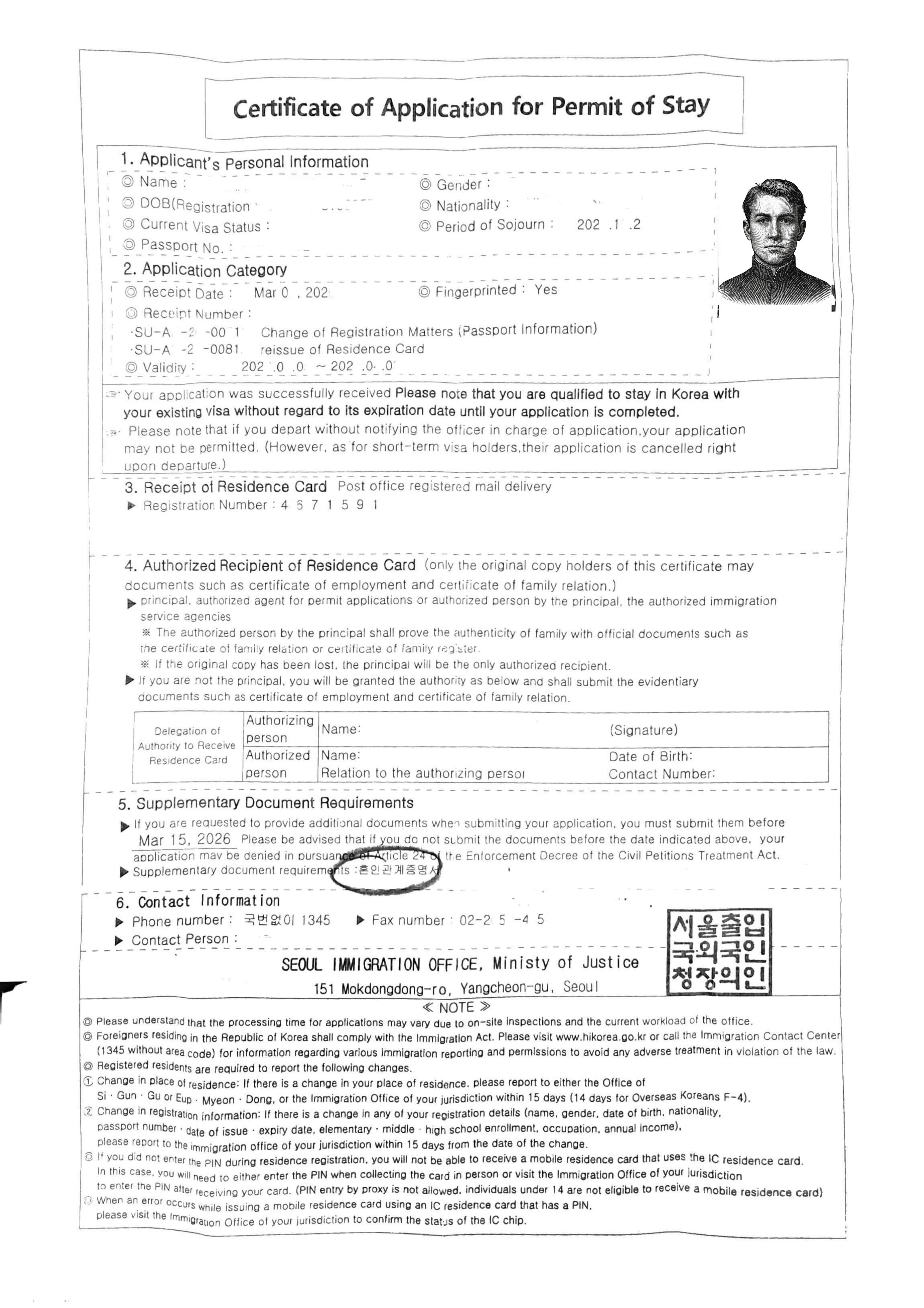 1. ARC application form (please tick 'change of information on registration' and 'reissuance of registration card'.